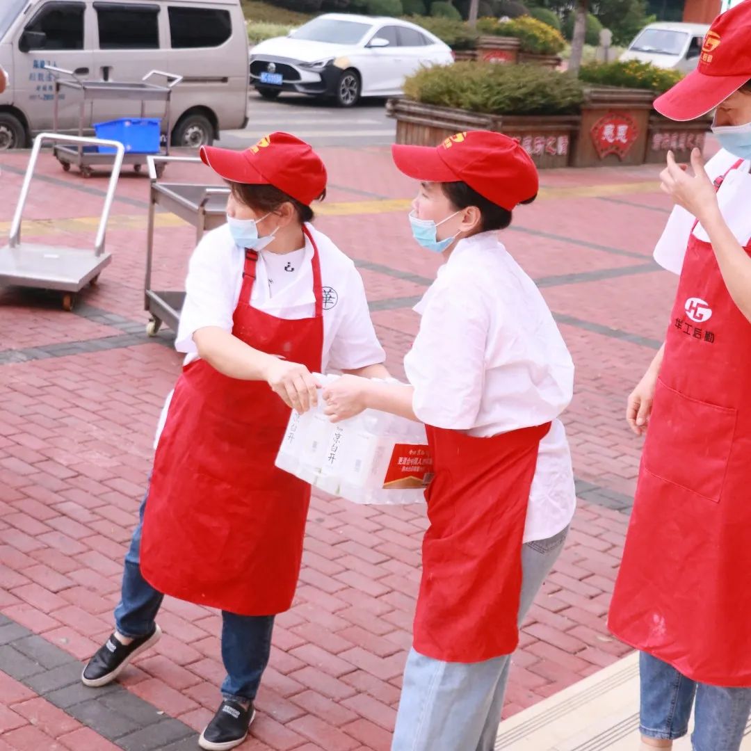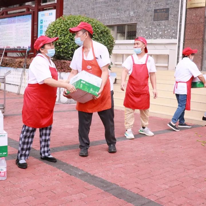 当天天气骤然降温,天空下起淅淅沥沥的小雨,但大家的内心是火热的,路过的同学们、国防班的预征兵、食堂的叔叔阿姨全都加入搬运物资的大军,你传我接,我递你放……温暖的双手架起一道“传送带”,不仅仅传递了一筐筐瓜果蔬菜、矿泉水,更传递了爱心和希望。在这个疫情笼罩的特殊时期,这些爱心物资的到来,温暖了每一个遵职人,如雪中送炭,令人珍惜和感动。