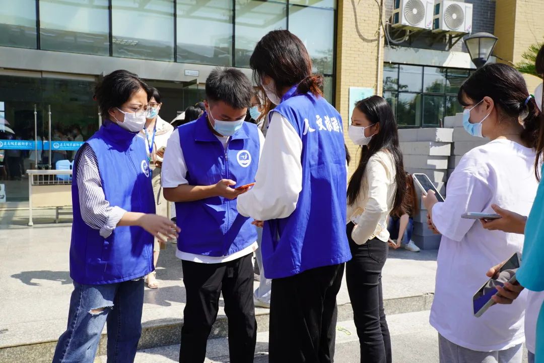 我们可爱的志愿者们也在认真地履行属于他们的职责——协助老师同学们完成各项操作,耐心解答师生的疑惑。