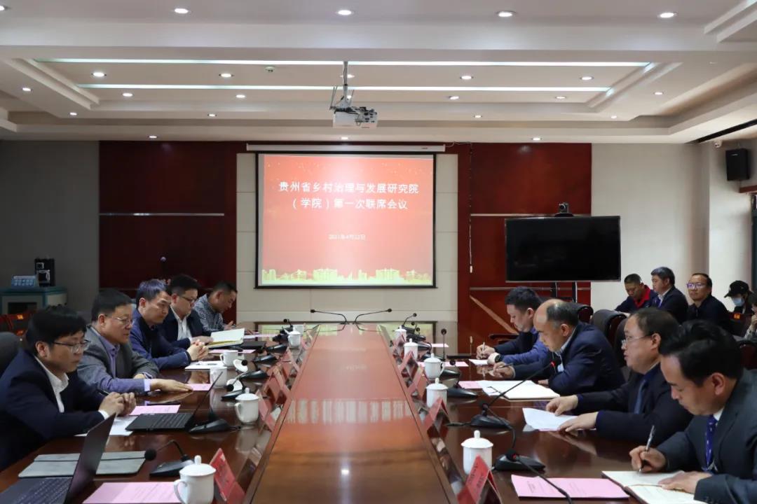 签约仪式结束后,贵州省乡村治理与发展研究院(学院)由贵州省中华职业教育社专职副主任罗国庆主持举行了第一次联席会议。